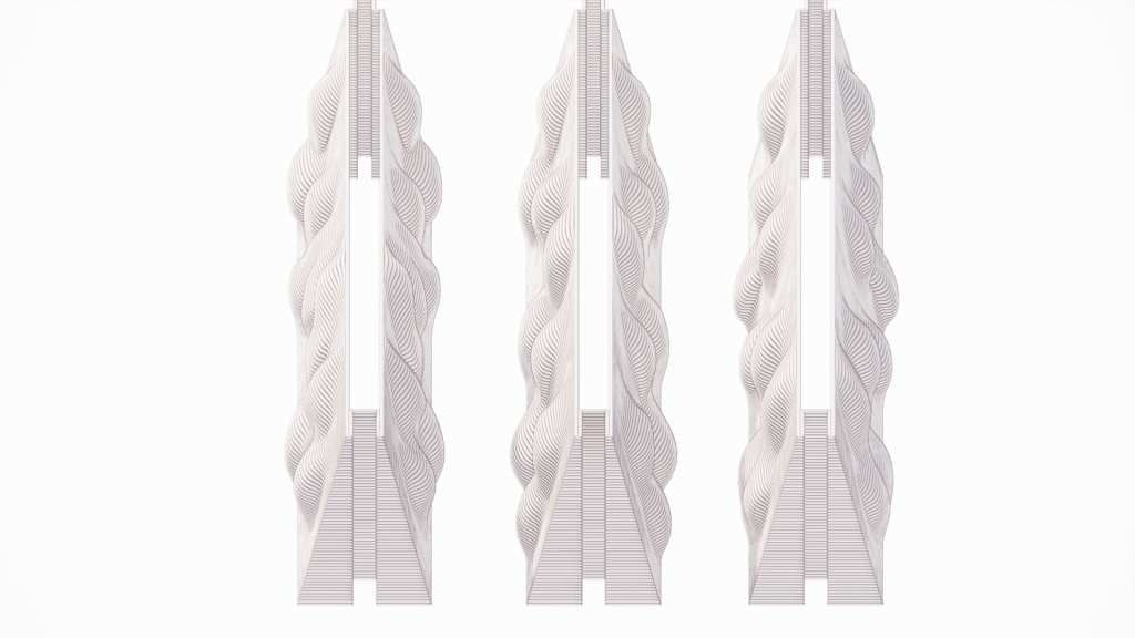 The Bubble Barrier was designed to reinterpret the traditional roadside jersey barrier by leveraging the geometric freedom of 3D printing. The design incorporates organic, flowing forms and features doubly-curved geometry, generated computationally using circular attractors. This approach allows for the creation of unique, individual components while maintaining a cohesive visual continuity.